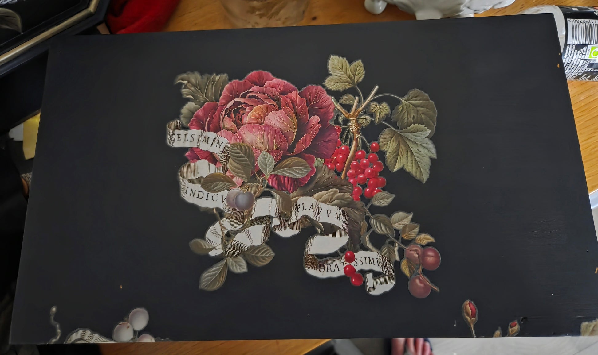 Discover timeless elegance with this stunning wooden jewellery box, designed to safeguard your most cherished treasures. Featuring a spacious single compartment lined with sumptuous burgundy fabric, this piece combines classic beauty with practical storage. The black exterior adorned with delicate rose detailing adds a touch of romance to any dressing table or bedroom. With generous dimensions of 35.5cm width, 20.5cm depth, and 11.5cm height, it offers ample room for rings, necklaces, bracelets, and more. The padded interior ensures your precious items remain protected, making this jewellery box both a functional accessory and a decorative treasure you'll treasure for years to come.