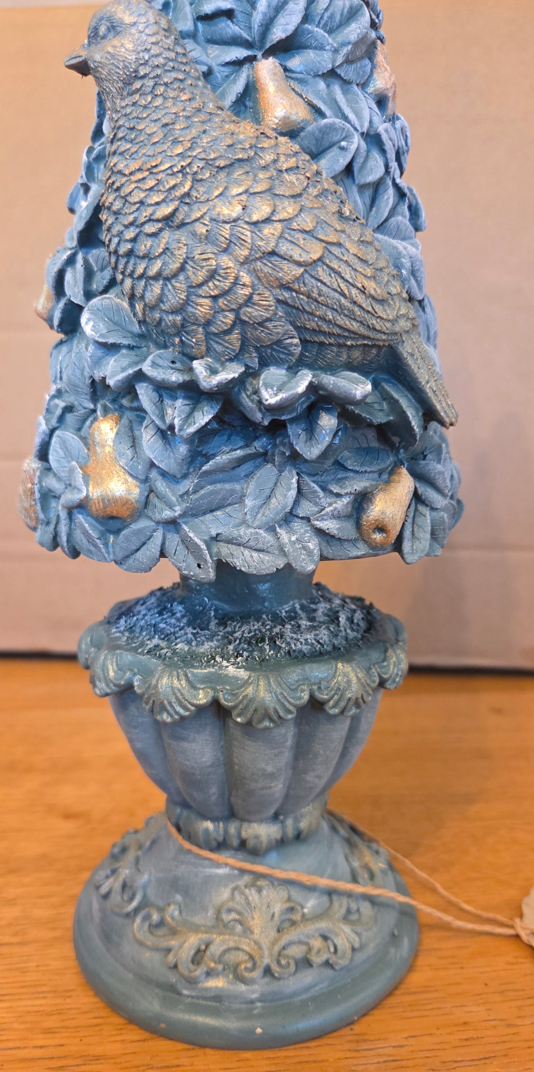 Bring festive charm to your home with this beautifully detailed Partridge in a Pear Tree figurine, standing at an impressive 37cm tall. Crafted with meticulous attention to detail, this piece features elegant gold accents that catch the light beautifully. Perfect as a standalone display or paired with our matching partridge figurines sold separately, it creates a stunning seasonal centrepiece that celebrates tradition with style and warmth.