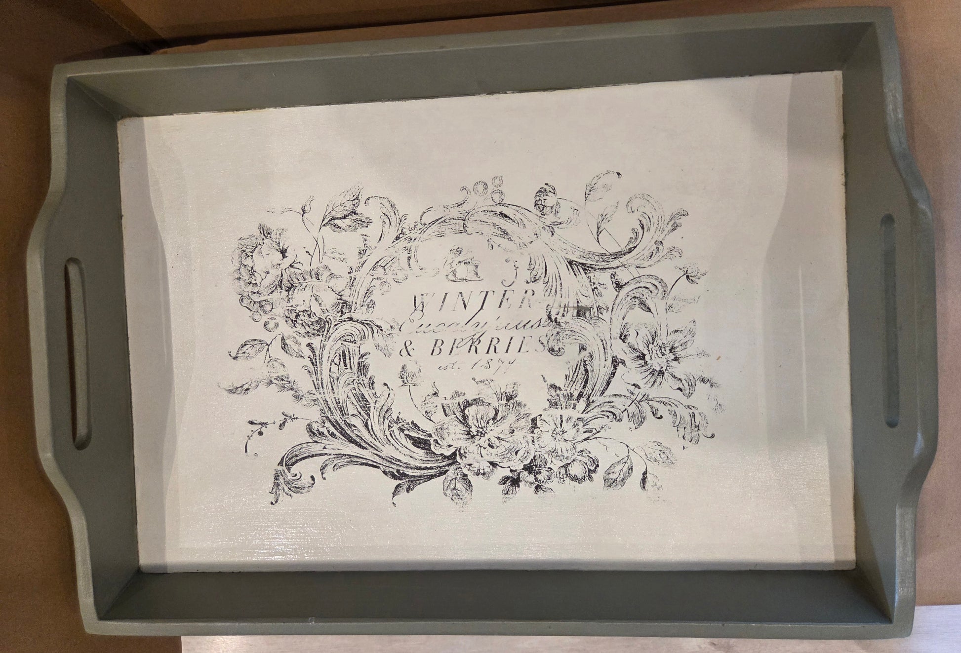 Vintage Wooden Vintage Tray - Green and White Winter design